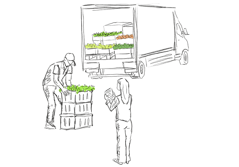 verschiedenen Betrieben in der Region vom Food Hub gesammelt und in Depotstellen oder per Hauslieferungen den Konsument:innen derselben Region bereitsgestellt.“
